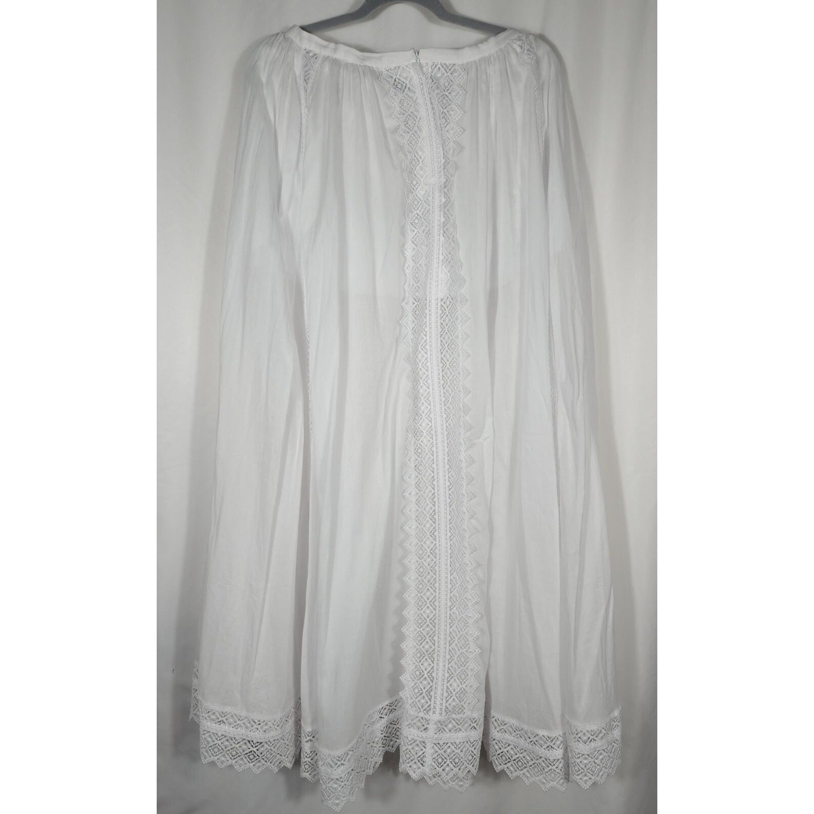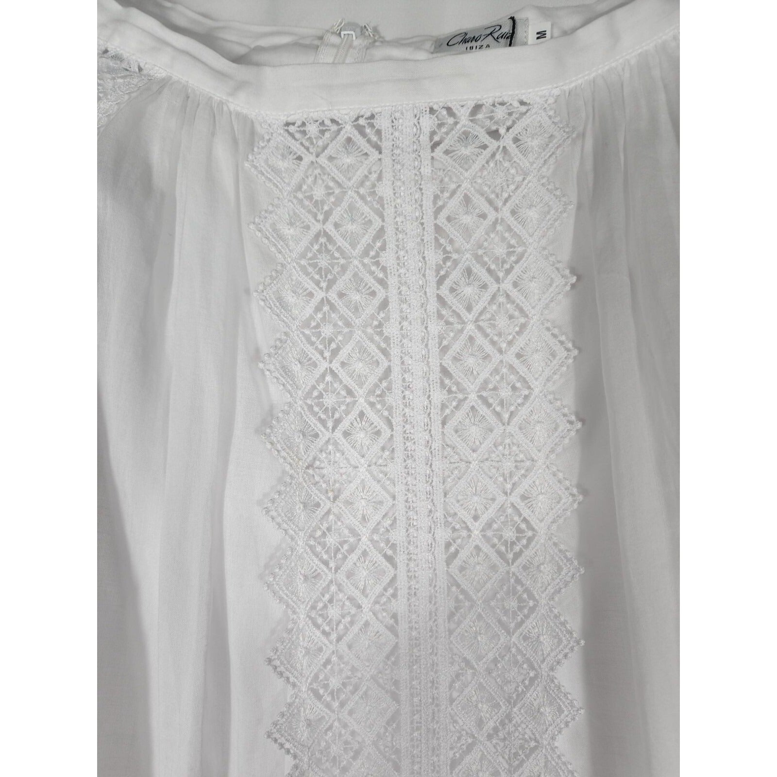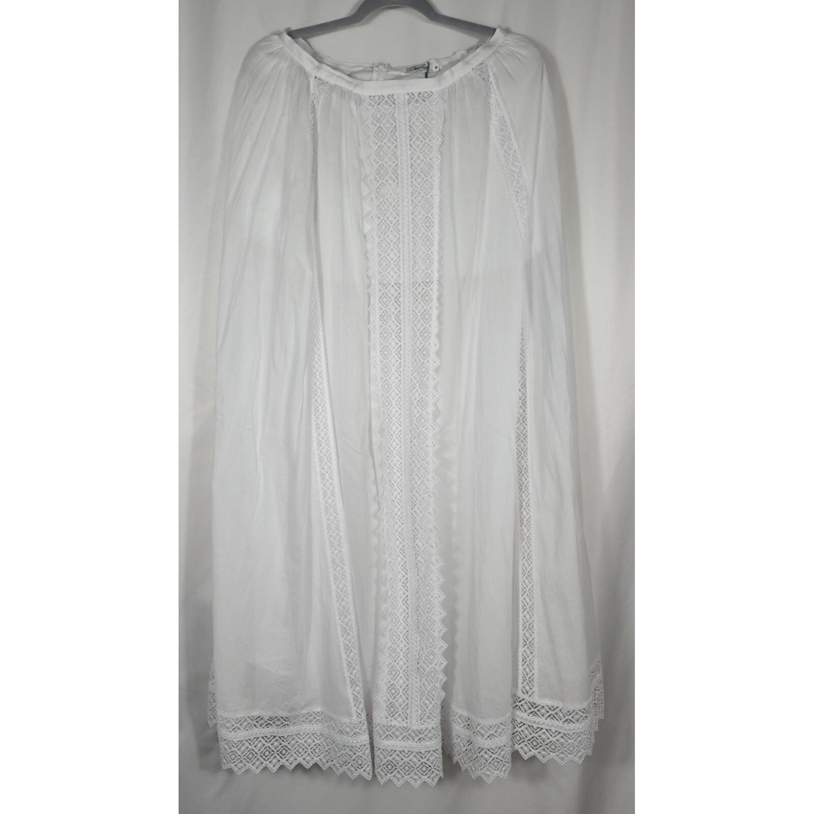 • Full length lace strips going down skirt.